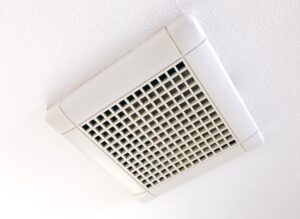 上の写真では、天井に設置されている換気扇の取り替え作業中の様子をご覧いただけます。