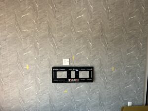 施工当日は、ふかし壁部分の下地位置を確認したうえで、HAMILeX(ハミレックス)製の壁掛け金具を取り付けました。その後、大型薄型テレビを慎重に設置し、水平や固定状態を細かく確認しています。新築住宅のため、内装を傷つけないよう配慮しながら作業を進めました。