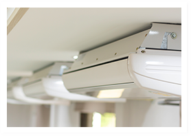 業務用エアコンは使用される場所の形態に合わせて種類がございます。天井埋込み形や天吊形など業者によっては対応できないものもありますが富士山電気では対応いたします。修理やクリーニングのお問い合わせの際はどのタイプのエアコンなのか教えていただけるとスムーズです。